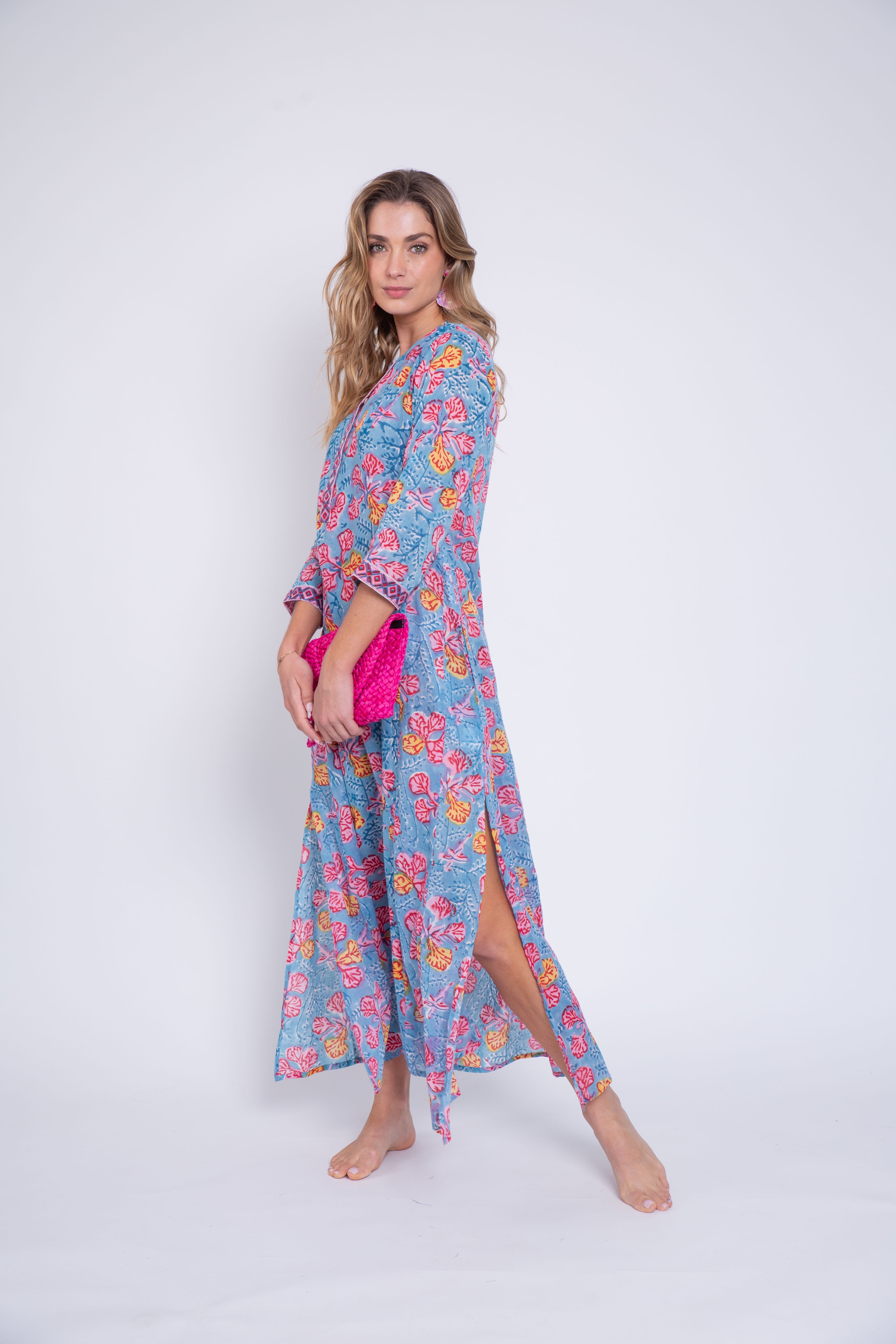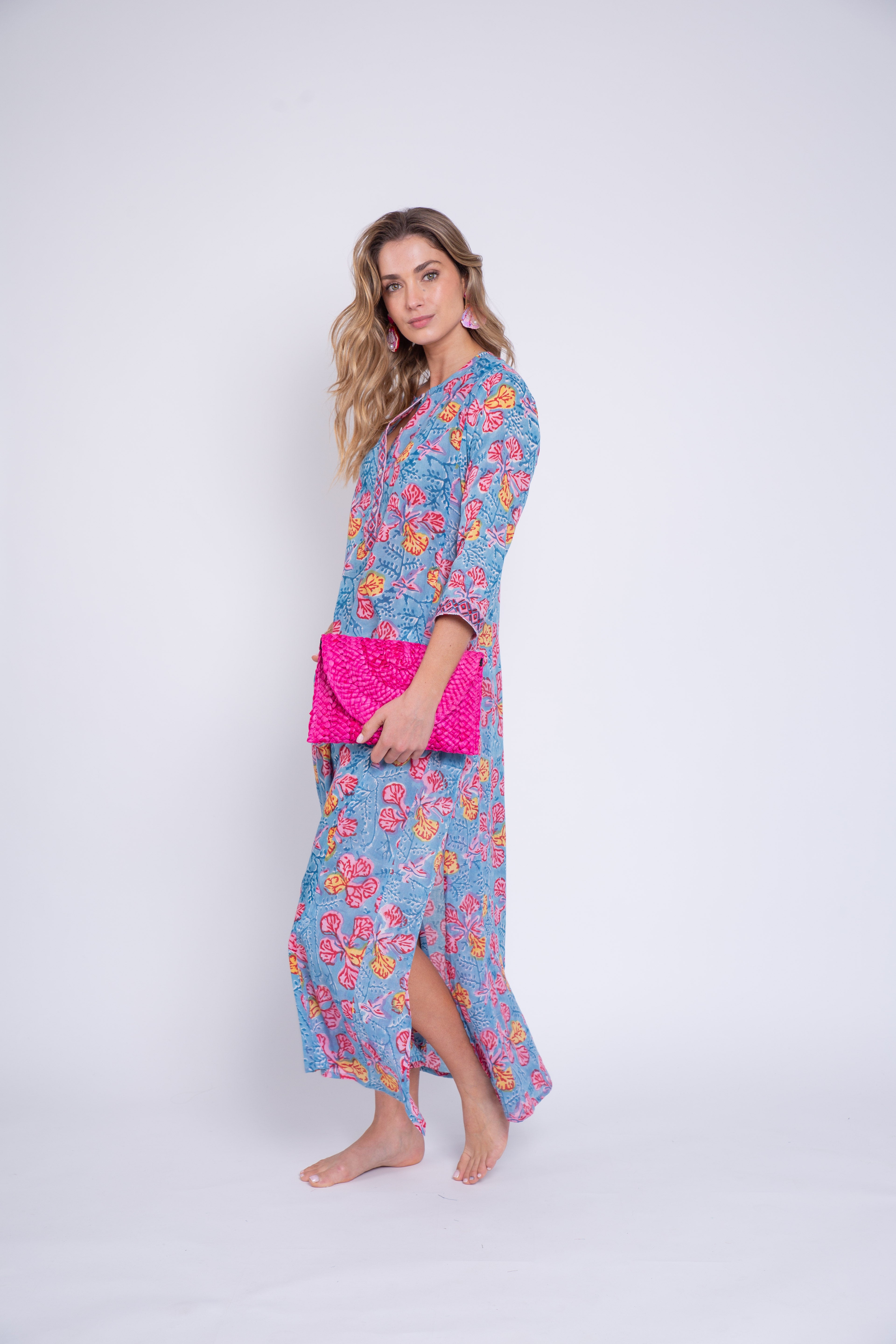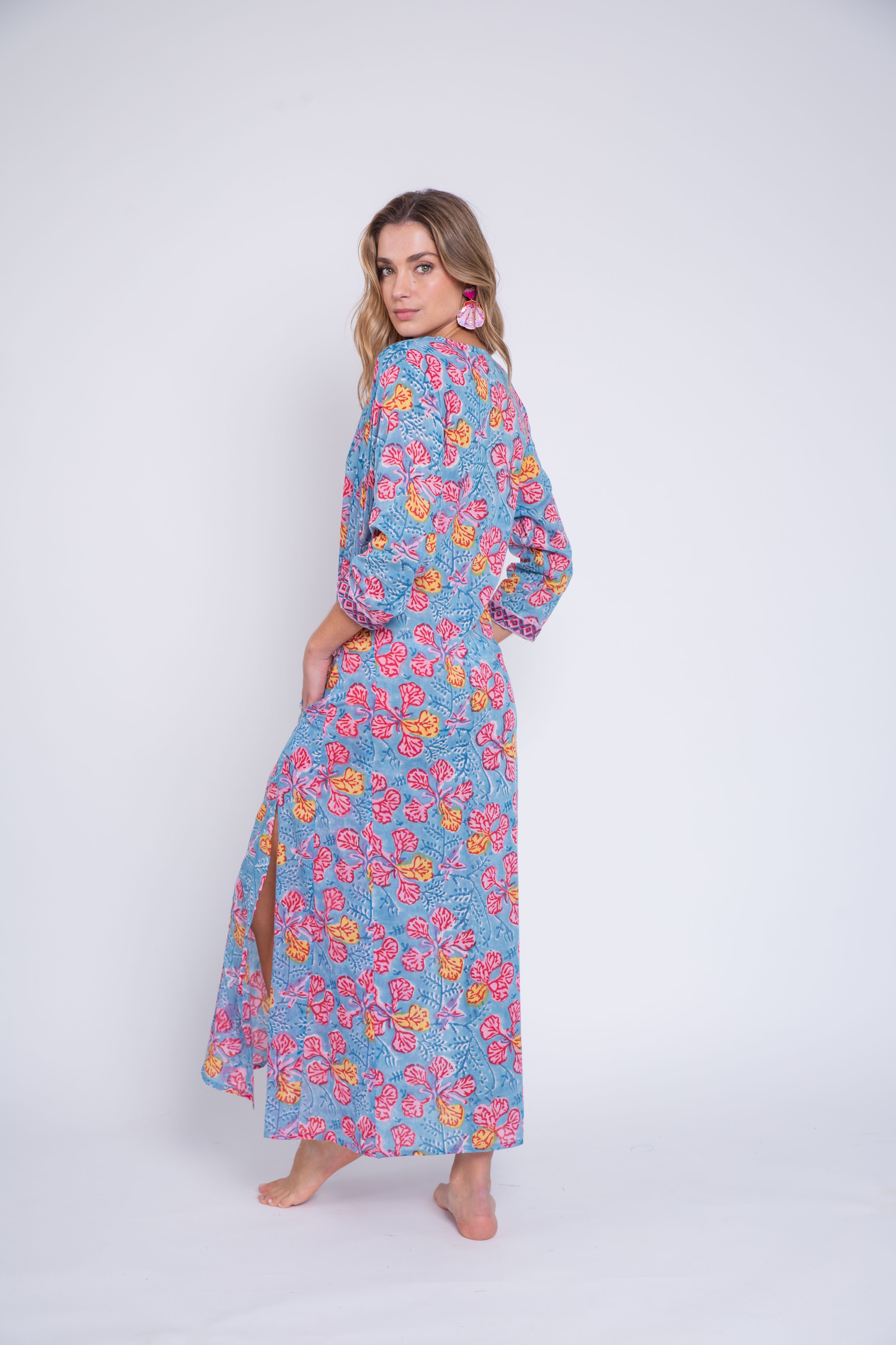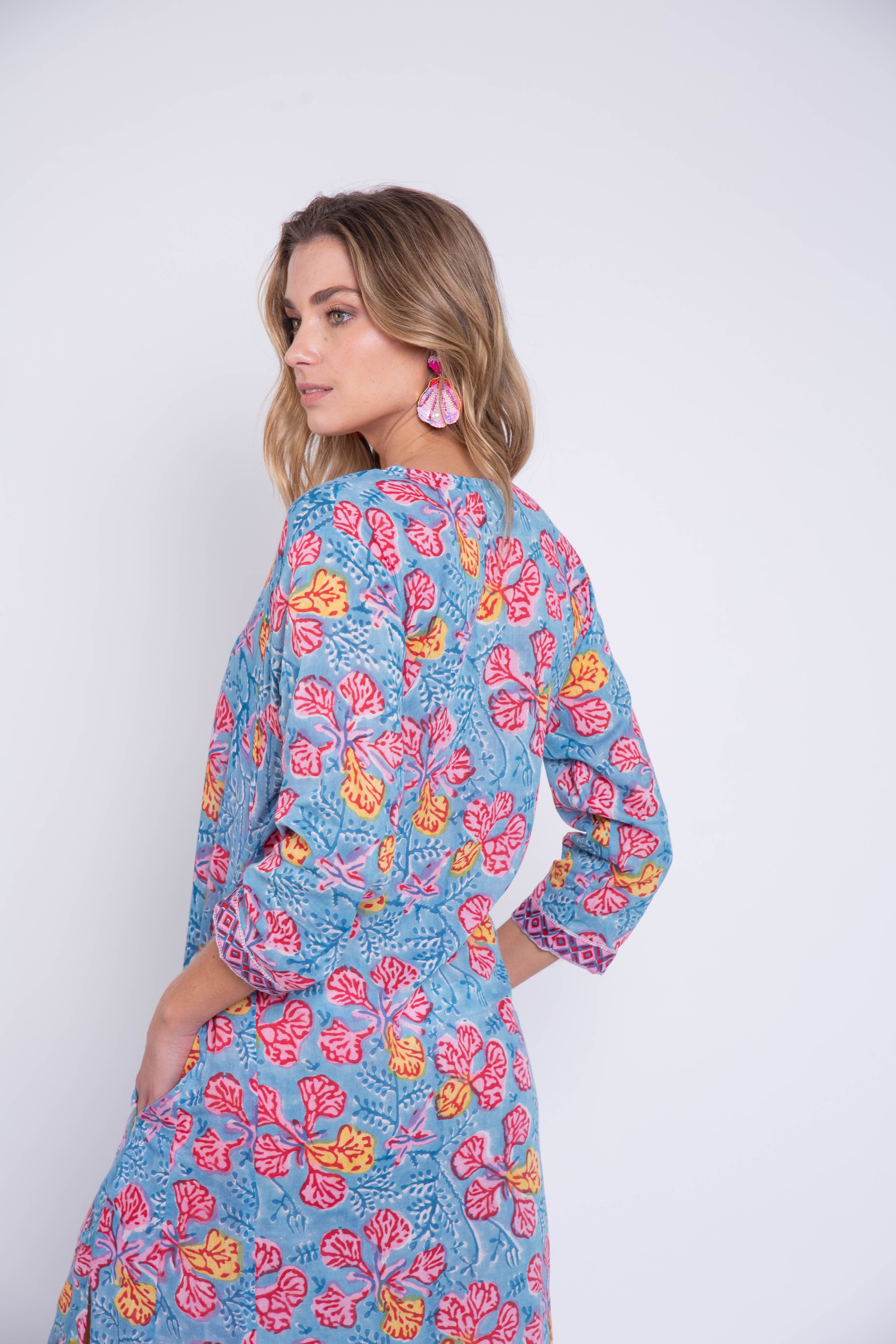 Túnica 100% algodón Indio estampado a mano con bloques de madera.