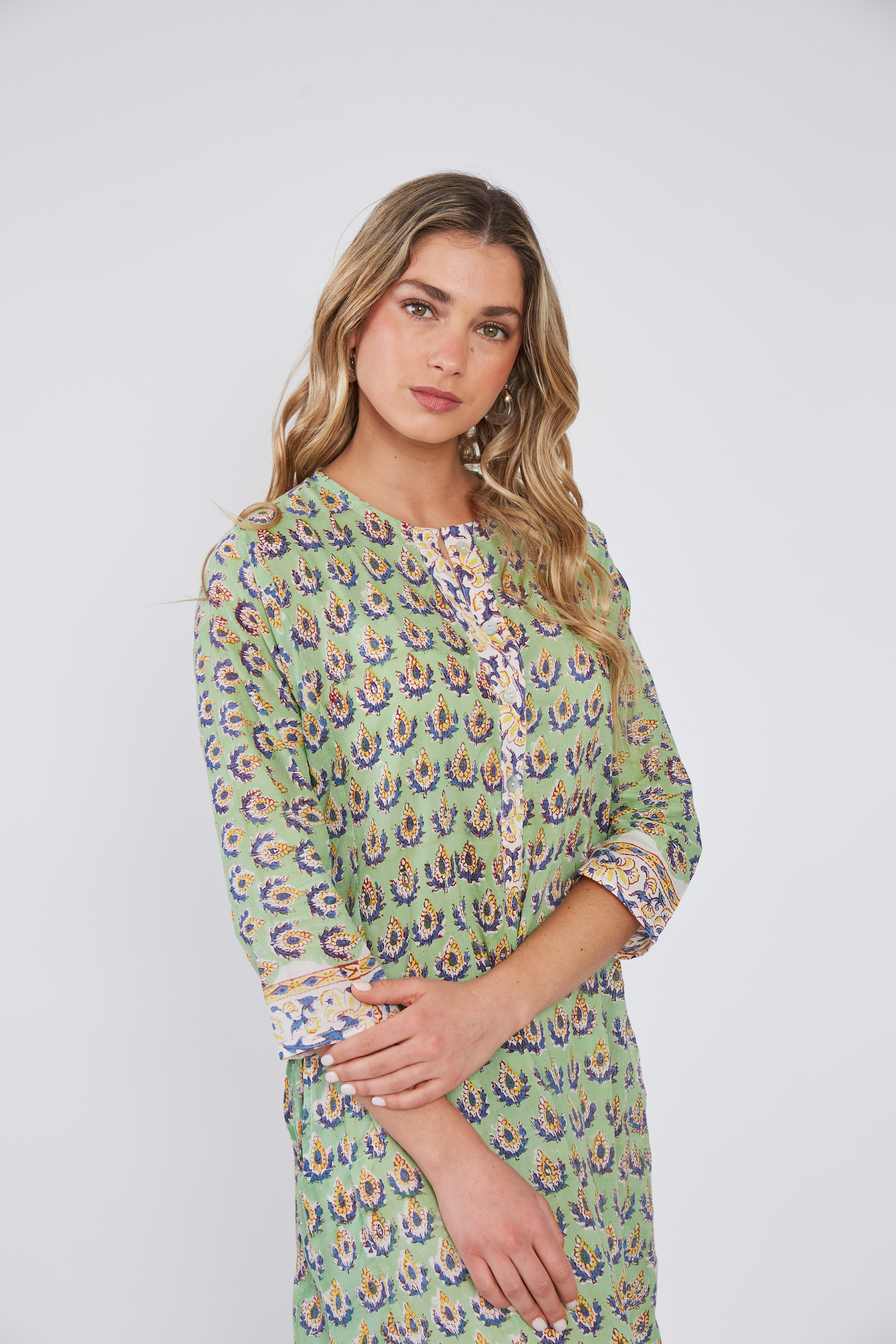 Túnica 100% algodón Indio estampado a mano con bloques de madera.