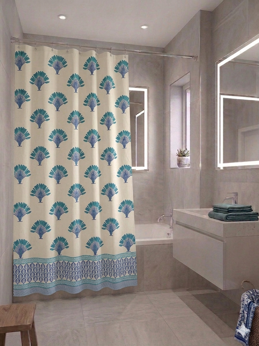 Cortina de Baño. 100% algodón estampado a mano con bloques de madera.